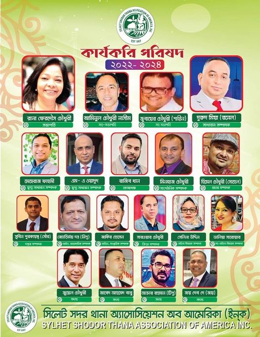 রানা ফেরদৌস চৌধুরী নতুন সভাপতি হন। দুরুদ মিয়া রনেল আবারও সাধারণ সম্পাদক হয়েছেন। নতুন কমিটির কোষাধ্যক্ষ হন রাজীব খান। ভাইস প্রেসিডেন্ট হয়েছেন এ সংগঠনের দীর্ঘদিনের দুই সতীর্থ আমিনুল চৌধুরী নাসিম এবং জুবায়ের চৌধুরী শাহীন। সাংগঠনিক সম্পাদকের দায়িত্বে আছেন মিনহাজ চৌধুরী। মেহরাজ ফাহমি, এমএ ওয়াদুদ সহ-সাধারণ সম্পাদক, প্রচার সম্পাদক হিমেল চৌধুরী সোহেল, দপ্তর সম্পাদক সুবিন পুরকায়স্থ, জ্যোতির্ময় দত্ত নিশু আইন ও আন্তর্জাতিক বিষয়ক সম্পাদক, সাহিত্য ও সাংস্কৃতিক সম্পাদক জাকির হোসেন, ক্রীড়া সম্পাদক সারওয়ার চৌধুরী, মহিলা বিষয়ক সম্পাদক রিয়েল এস্টেট ব্যবসায়ী সেলিনা উদ্দিন, ডালিয়া সারওয়ার সহকারী মহিলা সম্পাদক। জুয়েল চৌধুরী, জাবেদ আহমেদ বাবু, আক্তার রহমান টিপু এবং জয় দেব দে সদরের নতুন এই কমিটির চার কার্যকরি সদস্য। আগামী ২৭ জুন সোমবার সন্ধ্যা ৭ টায় নিউইয়র্কে উডসাইডের কুইনস পেলেসে সিলেট সদর অ্যাসোসিয়েশনের নবগঠিত এই কার্যকরি পরিষদের অভিষেক অনুষ্ঠানের আয়োজন করছে।