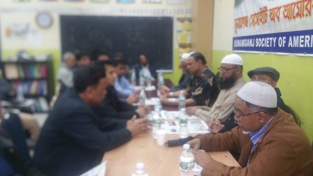 সুনামগঞ্জ সোসাইটি অব আমেরিকা ইনকের সভাপতি মুশাহিদ চৌধুরীর সভাপতিত্বে এবং সাধারণ সম্পাদক মাসুক মিয়ার পরিচালনায় সভায় অন্যদের মধ্যে বক্তব্য রাখেন, সংগঠনের প্রধান উপদেষ্টা জিল্লুল হক, উপদেষ্টা মৌলানা আজির উদ্দিন, মাসুকুল হক, আব্দুল কাদেব (নসর), শফিক উদ্দিন, কামাল উদ্দিন, কাজী কবিরুল ইসলাম, আঙ্গুর মিয়া, মো. ছানোয়ার, মনমোহন রায়, সহ সভাপতি ইকবাল খান, আনোয়ার হুসেন, রুহেল চৌধুরী, এডভোকেট আলাউদ্দিন, রায়হান মিয়া, সম্পাদক মন্ডলীর সদস্য নুর উদ্দিন, শফিক আলী, নূর উদ্দিন ইকবাল, মামুন রশিদ, সিমুল আহমেদ, মুস্তাক আহমেদ, সৈয়দ উদবাহ, সোহাগ আহমেদ, কার্যকরী সদস্য হারুন ইসলাম, মো. আবদুল গাফ্ফার চৌধুরী, হেলাল মিয়া প্রমুখ।