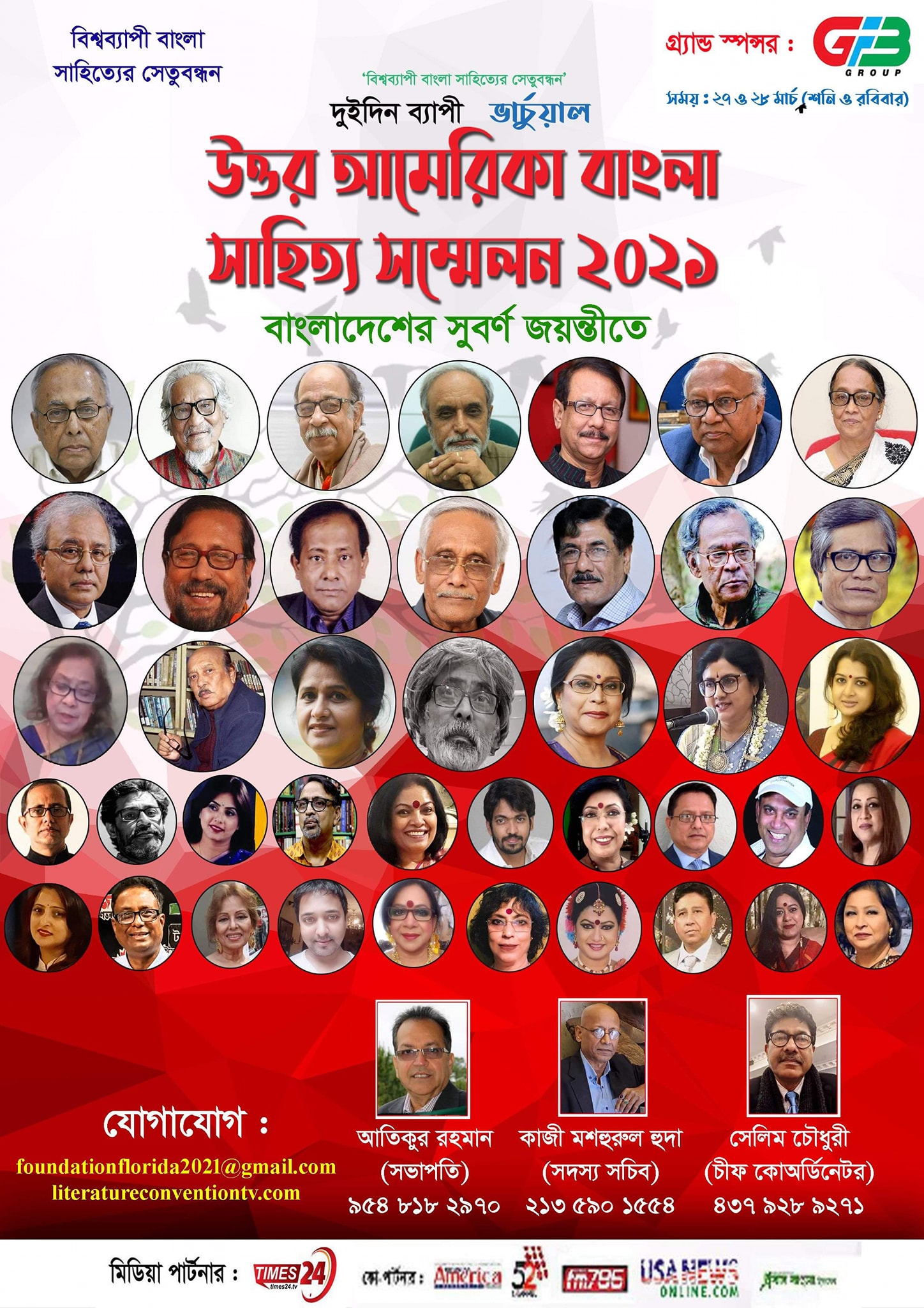 ‘বিশ্বব্যাপী বাংলা সাহিত্যের সেতুবন্ধন’ স্লোগানে ২৭ ও ২৮ মার্চ ২২ ঘণ্টা ধরে ‘উত্তর আমেরিকা বাংলা সাহিত্য সম্মেলন ২০২১’ অনুষ্ঠিত হয়।