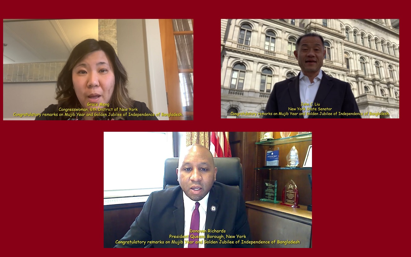 স্বাধীনতার সুবর্ণ জয়ন্তীতে বাংলাদেশের ভূয়সী প্রশংসায় মার্কিন কংগ্রেসওম্যান গ্রেস মেং, নিউইয়র্ক স্টেট সিনেটর জন ল্যু এবং কুইন্স বোরো প্রেসিডেন্ট ডনাভান রিচার্ডস
