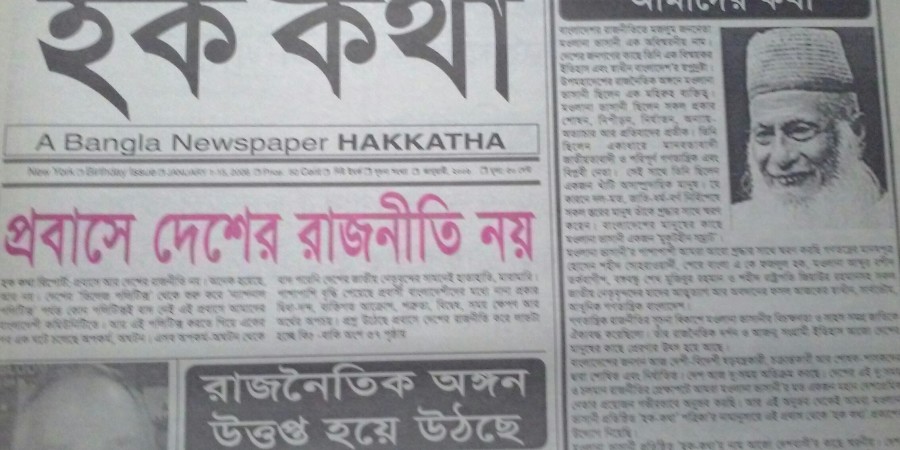 একটি প্রশ্ন? কমিউনিটির নিয়মিত ১২টি সাপ্তাহিক সংবাদপত্রের ভীড়ে আবার কেন নতুন পত্রিকা ‘হক কথা’র আত্বপ্রকাশ। এ বিষয়ে আমরা আপাতত: কোন মন্তব্য না করে শুধু এটুকুই বলতে চাই আগামী দিনগুলোতে চলার পথে ‘হক কথা’ই বলে দেবে কেন ‘হক কথা’র আত্বপ্রকাশ। কমিউনিটির অন্য সকল পত্রিকাগুলোর সাথে ‘হক কথা’ও এক সহযাত্রী। ‘হক কথা’র যাত্রা পথে মহান আল্লাহতায়ালার অসীম রহমত এবং পত্রিকাটি’র অভিষ্ট লক্ষ্য অর্জনে আমরা দলমত নির্বিশেষে সবার সহযোগিতা কামনা করছি। সবার প্রতি রইল ইংরেজী নববর্ষ ২০০৬ এবং পবিত্র ঈদ উল আযহার শুভেচ্ছা।’