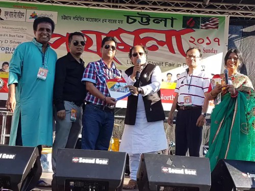 ইউএসএনিউজঅনলাইন.কম ডেস্ক, নিউইয়র্ক : ব্রুকলীনে ম্যাকডোনাল্ড এভেন্যুর উপর গত রোববার বিশাল ও সুপ্রশস্ত ব্লক জুড়ে বসেছিল পথমেলা চট্টলা মেলা। বিপুল সংখ্যক চট্টগ্রামের প্রবাসী বাস করেন এই এলাকায়। মেলার আয়োজন চট্টগ্রাম সমিতি করলেও সেই মেলা সকলের জন্য অবারিত। তাই দুপুরের রোদের উত্তাপ কমার সাথে সাথে সপরিবারে হাজার হাজার মানুষে ভরে গেল পথমেলা চত্বর। চার্চ এভেন্যুর গা ঘেষে শিশুদের জন্য নানা রাইড। আর এভেন্যু সি ঘেষে বিশাল মঞ্চ। এই সময়ই মঞ্চে উঠলেন নিউইয়র্কে বিপুল জনপ্রিয় শিল্পী শাহ মাহবুব। লাল হাওয়াই শার্ট গায়ে শাহ মাহবুব যখন গান ধরলেন, যেন প্রাণ এলো মেলায়। মানুষরা ছুটে এলেন মঞ্চের কাছে। মঞ্চ মাহবুবকে তারা মঞ্চ থেকে নামতে দেবে না। একটার পর একটা গান ধরছেন আর মাতাল করছেন দর্শকদের। শাহ মাহবুুবও পাকা পারফর্মারের মতো মঞ্চ থেকে নেমে এসে যেখানে সমিতির সভাপতি জিয়া হাই সহ অন্যান্য নেতৃবৃন্দ দাঁড়িয়ে গান শুনছিলেন তাদের নিয়ে গাইতে থাকলেন। গানের তাল এমনই অনিবার্য যে তা শরীরের দোলা দিয়ে যায়। অতএব সকলেই তার গানের তালে নাচতে দ্বিধা করলেন না। মেলা জমিয়ে দিয়ে শাহ মাহবুব ক্ষান্তি দিলেন। এই সময় এসে পৌঁছুলেন ব্রুকলীনের ভারপ্রাপ্ত ডিস্ট্রিক্ট এটর্নি এরিক গঞ্জালেস। তিনি মঞ্চে উঠে ডেকে নিলেন তার বন্ধু এটর্নি পেরি সিলভারকে।