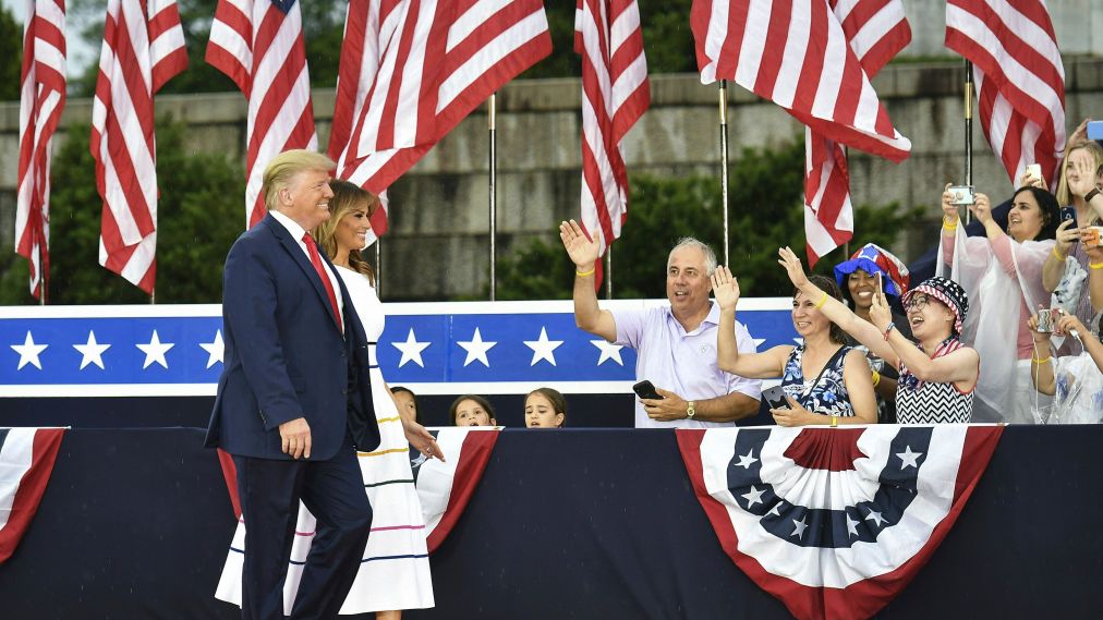 US President Donald Trump and the First Lady arriveat the Salute to America celebration in front of the Lincoln Memorial on July 4, 2019 in Washington, DC. (Photo by MANDEL NGAN / AFP) (Photo credit should read MANDEL NGAN/AFP/Getty Images)