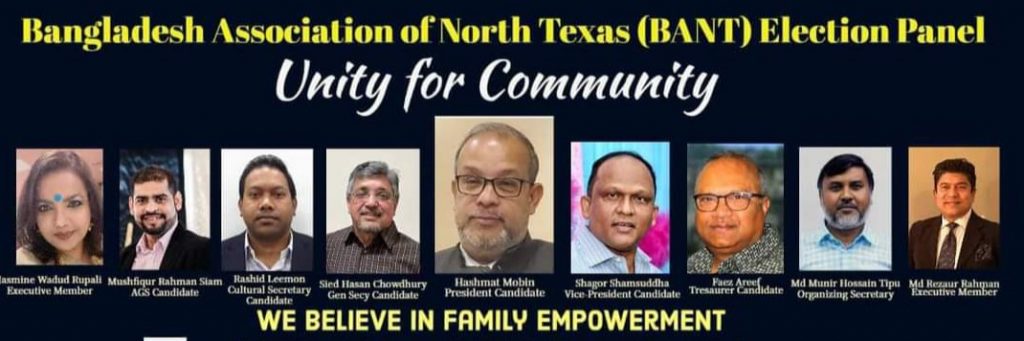 ৩৭ তম ফোবানার হোস্ট সংগঠন বাংলাদেশ এসোসিয়েশন অফ নর্থ টেক্সাস’র নির্বাচন অনুষ্ঠিত : মবিন-সইয়েদ প্যানেল বিজয়ী