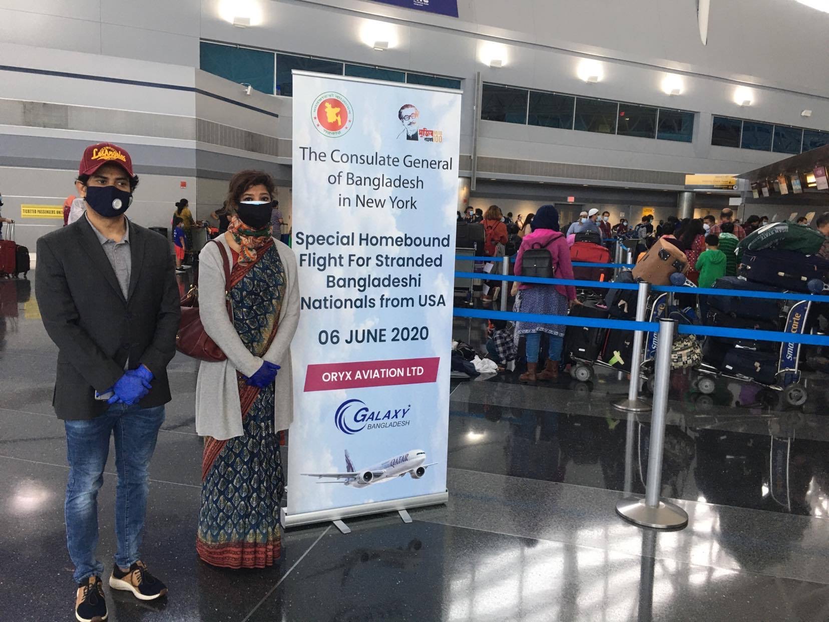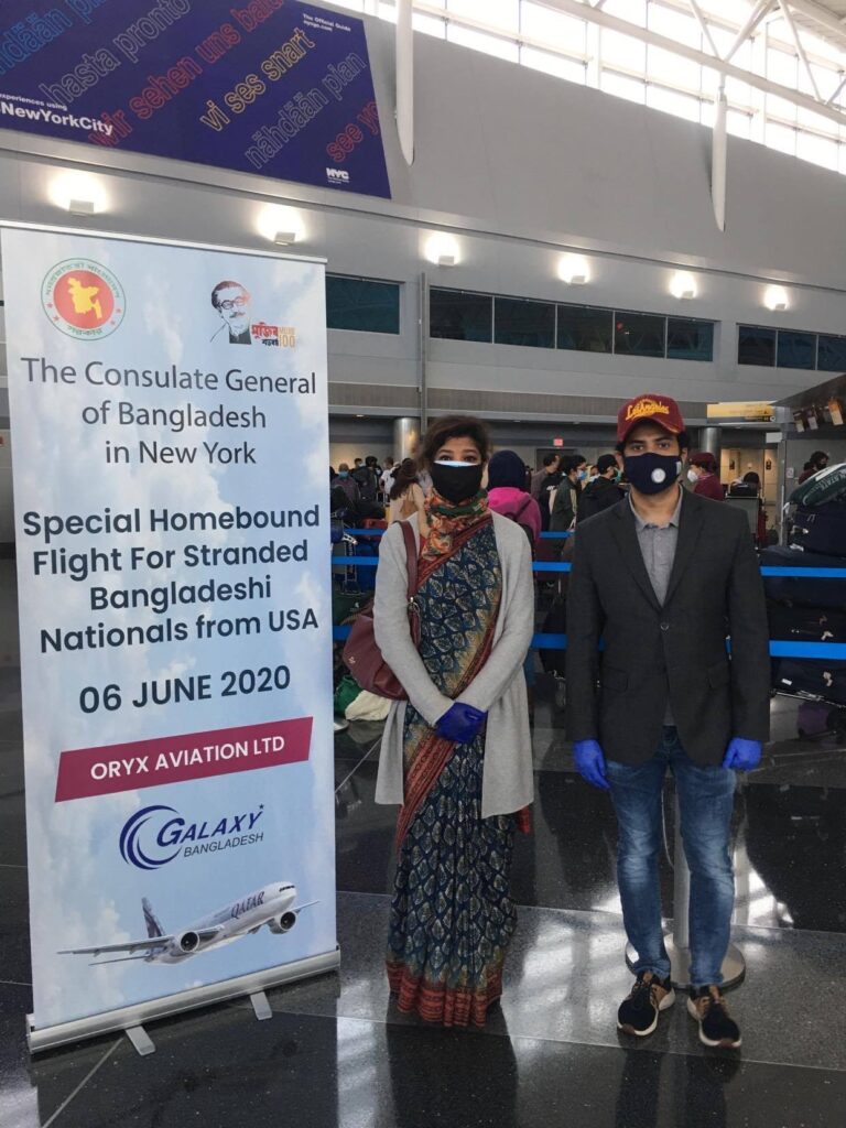 Ms. Sadia Faizunnesa, Consul General of Bangladesh in New York was present at the JFK Airport to see off the stranded Bangladeshi citizens.
