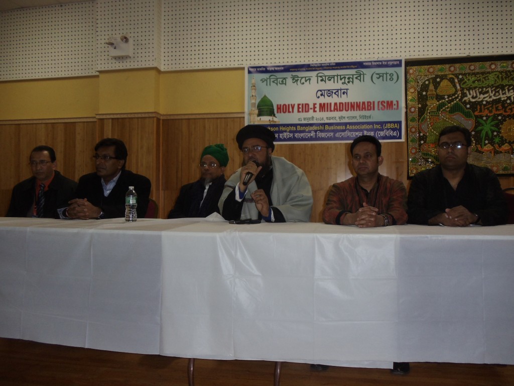 জ্যাকসন হাইটস বাংলাদেশী বিজনেস এসোসিয়েন (জেবিবিএ) এর সভাপতি জাকারিয়া মাসুদ জিকোর সভাপতিত্বে এবং সাধারণ সম্পাদক তারেক হাসান খানের পরিচালনায় মঞ্চে ছিলেন, মাওলানা ইকবাল মাসহুদ ইকবাল, মাওলানা ফায়েক উদ্দিন, বাংলাদেশ সোসাইটির সভাপতি কামাল আহমেদ, মুলধারার রাজনীতিক গিয়াস আহমেদ, ঈদে মিলাদুন্নবী (সাঃ) ও মেজবান পার্টি উদযাপন কমিটির প্রধান সমন্বয়কারী মাকসুদুর রহমান, সমন্বয়কারী আসাদুল বারী আসাদ, আহবায়ক সিরাজুল ইসলাম খান, সদস্য সচিব আজিজুল হক মুন্না ও সদস্য মোহাম্মদ এম ইসলাম।