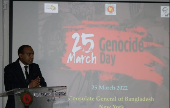 নিউইয়র্কে বাংলাদেশ কনস্যুলেট জেনারেলে যথাযথ ভাবগাম্ভীর্যের সাথে গণহত্যা দিবস পালন