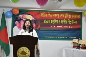 In the concluding speech, the Ambassador said that the child that was born on this day in1920 in Tungipara, Gopalganj, became the symbol of pride of the Bengali nation when he became an adult with his leadership, wisdom and sacrifices. He liberated the nation from the exploitation and deprivation of Pakistan. In the independent Bangladesh, he became the undisputed leader of the nation. Bangabandhu Sheikh Mujibur Rahman materialized the dream of Bengalis for an independent country. She also said that Bangabandhu loved children very much and could blend with them easily. The Ambassador encouraged all the children present there to become enlightened human being like Bangabandhu.