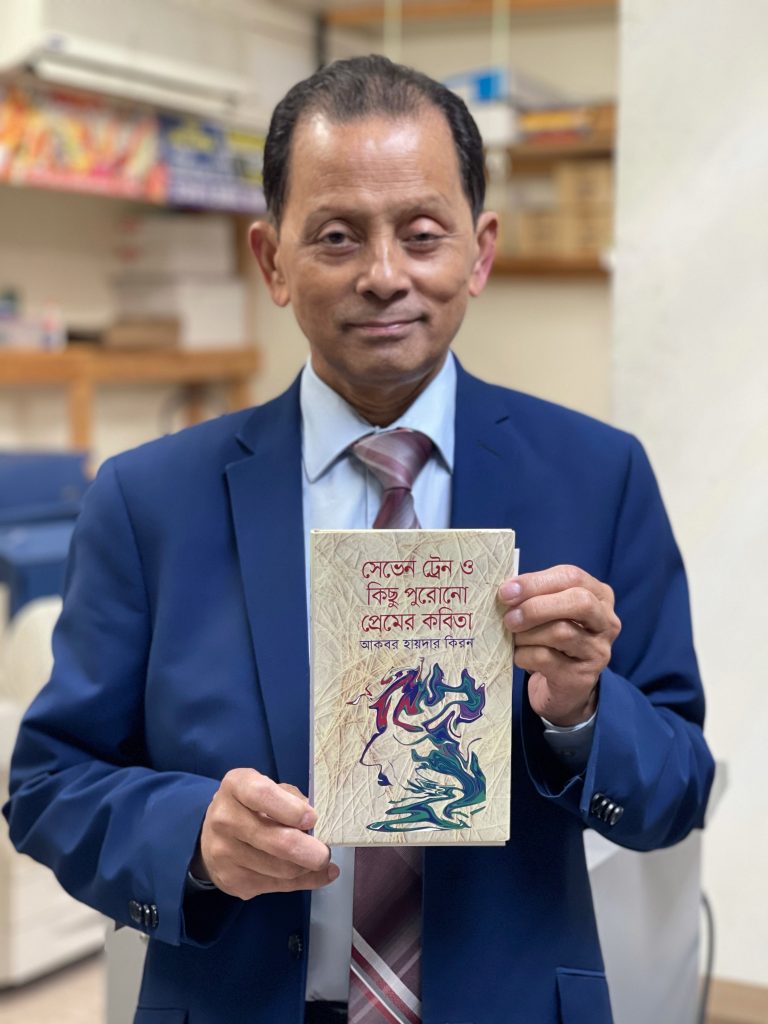 > The name of the book containing the poems of Akbar Haider Kiron is, ‘Seven Train O Kichu Purono Premer Kobita’. The book was published by Mr Monirul Haq, propreitor of the publication house, ‘Ananya’ of Dhaka, Bangladesh. He laid utmost importance on Kiron’s poems while printing the book.