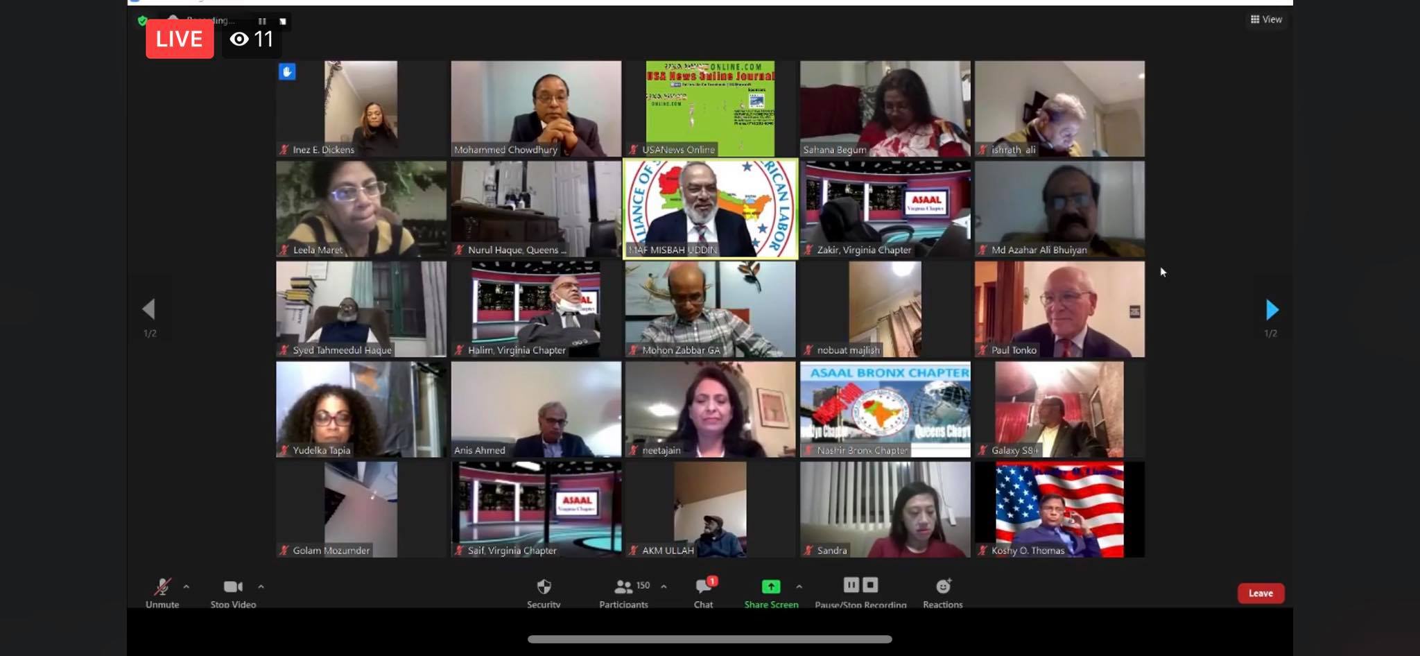 ASAAL Leaders from all chapters spoke including Anis Ahmed, National Director Bangladeshis for Biden, Nurul Haque, Sahana Begum, Jamilla Uddin, Sultana Khanum, Adan Islam, Afroza Begum Rosey, and Shermin Sultana Taher from Queens; Syed Tahmeedul Haque and Md. Alauddin from Bronx, Dr. Mujibur Rahman and Khairul Hossain from Brooklyn; Irshad Sheikh, Reginald Rajajkaruna, and Abou Diakhate from Staten Island; Farook Hossain from NJ; Md. Ali Hossain, Syed Alam, and Dr. Rashis Malek; MD Rabbi Alam, Esq. and Ibrahim Aljahim; Shah Farid from Pennsylvania; Mizabur Rahman and Methu Aminul Bhuiyan from the NYS CapitalRegion; Sharafat Hussain and Mukit Rahmanfrom the US Capital; and National Trustee Aziz Ahmed.