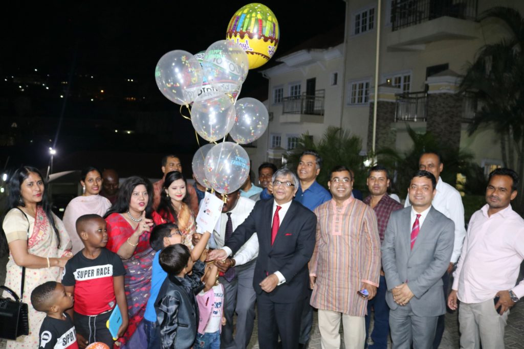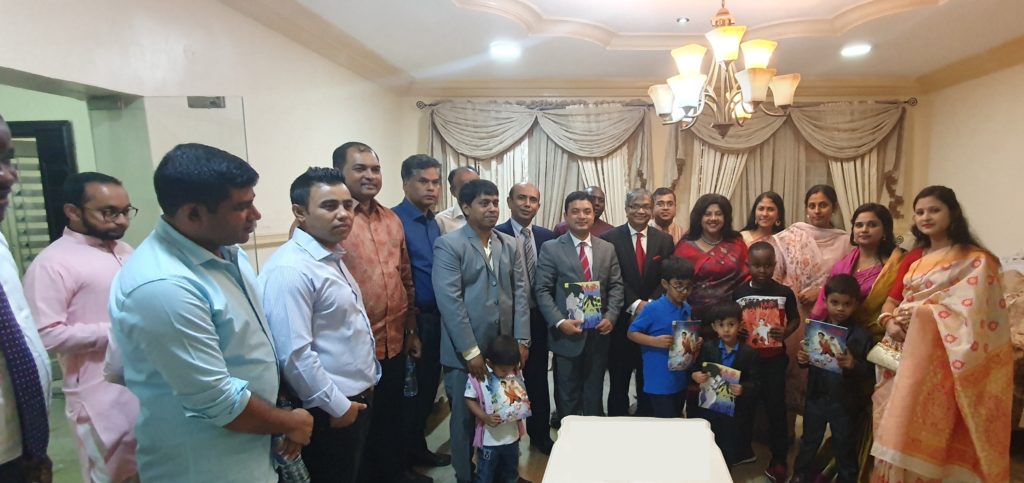 In the evening, a discussion meeting took place at the auditorium of the High Commission. Other activities included placing of floral wreath at the portrait of Bangabandhu by the High Commissioner, accompanied by his wife Mrs. Pandora Chowdhury, officials and members of the community, screening of documentary, cutting cake, releasing of balloons, distribution of ‘Mujib Graphics Novel’ book among the children and visiting ‘‘Bangabandhu Corner’’.