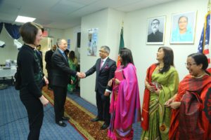As a part of the celebratory activities, a Reception was held at the Auditorium ofthe Consulate General at 6:00pm-9:30pm on 27 March 2018. It started with the playing of the nationalanthems of Bangladesh and USA. One minute silence was observed as a mark of respect for the martyrs. In his welcome remarks, Mr. Md. Shameem Ahsan,ndc, Consul General paid rich tribute to