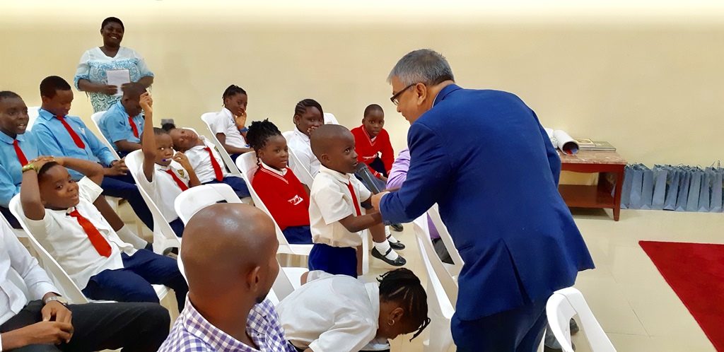 The students and the faculty members received packets containing souvenirs from Bangladesh and some publications. The High Commissioner handed over a copy of the autobiography (The Unfinished Memoir) written by the Father of the Nation Bangabandhu Sheikh Mujibur Rahman and few other publications for the library of the School.