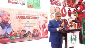 The High Commission also organized a special event entitled “Bangladesh Day” on 23 November, 2018 at the large auditorium on the sideline of the Expo to showcase  Bangladesh’s rich culture and traditions. While paying rich tribute to the Father of the Nation Bangabandhu Sheikh Mujibur Rahman, H.E. Mr. Md. Shameem Ahsan,ndc, High Commissioner of Bangladesh to Nigeria in his welcome remarks  highlighted on the tremendous achievements  Bangladesh made under the dynamic leadership of the Hon’ble Prime Minister Sheikh Hasina. He also touched on the rich culture and heritage of Bangladesh while mentioning the recognition of several heritage sites and cultural symbols of Bangladesh by the UNESCO.    Mr. Otunba Olesegun Runsewe, Director General of the NCAC in his remarks highly praised Bangladesh for being the first diplomatic Mission to confirm participation, and maintained that the participation will add a new chapter in the bilateral relations between Bangladesh and Nigeria.