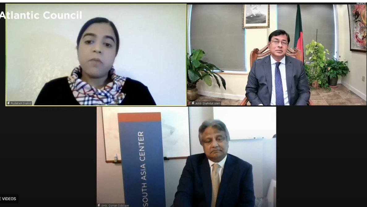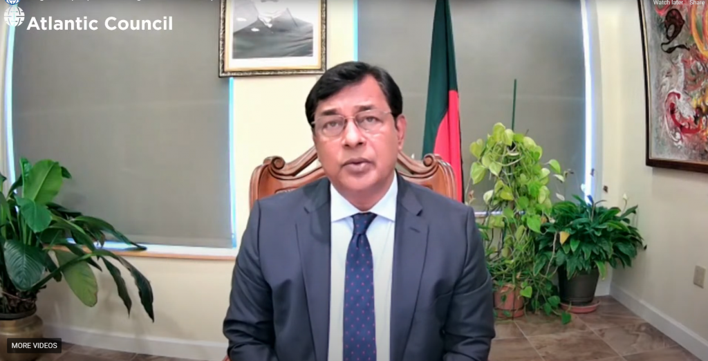 Bangladesh Ambassador to the United States M Shahidul Islam delivered a keynote speech on the theme of the event and took part in a moderated discussion and a Q&A session. Senior advisor of Atlantic Council’s South Asia Center and former U.S. Ambassador to Fiji, Mr. Osman Siddique, moderated the event.
