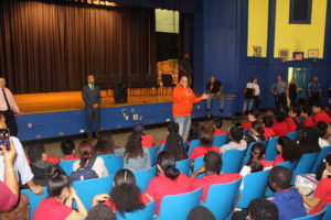 Borough President Ruben Diaz Jr. “I want to thank Fat Joe for his continued commitment to The Bronx and its students, and for never forgetting where he came from.” “We’re doing this because we love you. We love you, and we believe in you and we know that you’re the future. We know you’ve got what it takes, but that sometimes you need a little extra,” said Fat Joe at the announcement. “If I was you, I would make sure my whole class does better. Make sure everyone is working hard. Teamwork makes the dream work.” Students at four Bronx schools will participate in this initiative class for the remainder of the marking period, and will be tasked to work together to improve overall outcomes within their classroom. Progress in each class will be measured through the marking period ending in December, and will be based on student engagement, attendance, total number of books read and other factors. Four Bronx schools—P.S. 146, M.S. 123, Accion Academy and I.S. 217 School of Performing Arts—have been chosen to participate in this initiative. One class will be chosen as the “most improved” in each school, at the end of the December marking period, by that school’s principal. The students in that class will receive a brand new pair of Jordan sneakers from Fat Joe in exchange for their performance. CAPTION: Bronx Borough President Ruben Diaz Jr. and hip-hop legend Fat Joe pose with staff and students at Accion Academy and I.S. 217 School of Performing Arts after announcing a new initiative for student performance on Thursday, October 11, 2018. Download the photo at https://flic.kr/p/NbMvt8. CAPTION: Fat Joe and Borough President Ruben Diaz Jr. speak to students at M.S. 123 after announcing a new initiative for student performance on Thursday, October 11, 2018. Press Release.