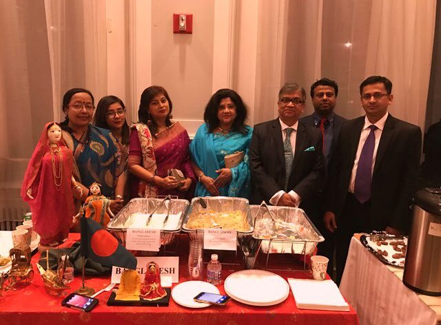 UsaNewsOnline.Com, New York : The Society of Foreign Consuls (SOFC) in New York celebrated International Women’s Day (IWD) on 2 March 2017 which included honoring accomplished expatriate women, showcasing traditional food and cultural performance from the participating Consulates General. The theme of this year’s celebration was “Celebrating Women Leaders in Our Communities” and the Consulate General of Check Republic hosted the event at its Bohemian National Hall, Manhattan. The Consulate General of Bangladesh in New York actively participated at the mega event. The celebration acknowledged one distinguished expatriate woman (Honoree) from each of the 18 participating countries including Bangladesh who made a major contribution to their communities in business, government or academia, in particular. As recommended by the Consulate General in New York, Ms. Nayeema Khan, Chairperson of Khan’s Tutorial, was formally honored for her notable success in the area of education in the Bangladesh diaspora in New York and beyond. Each of the Honorees had the opportunity to speak briefly on her achievements and received a certificate from the SOFC President in presence of the Consul General of his/her country. Ms. Rozina Ahmed Runi, a Bangladeshi fashion designer in New York and founder of Runi’s Desire was recognized under the Guest Category (Fashion Designer) for her notable success as a woman in the field. Bangladesh Consulate General also put up a stall showcasing various traditional food (Chicken Biriani and Samucha). Bangladesh Stall, decorated with traditional Bangladeshi articles and handicrafts, drew huge number of foreign guests. All of them deeply appreciated the unique taste and flavor of the Bangladeshi food. There was a stellar performance by the local artists of BIPA (Bangladesh Institute of Performing Arts) which earned deep appreciation. The artists performed a dance themed on a popular patriotic song from Bangladesh. Artists from a good number of countries also performed at the cultural segment which added beauty to the event. Participation of the Consulate General afforded an opportunity to showcase the achievements of the Bangladeshi women among others and to promote and project the traditional food and rich culture of Bangladesh among the wider US audience which included Senior US officials, diplomats and members of the civil society. Founded in 1925, Society for Foreign Consuls (SOFC), New York represents the world’s largest consular corps comprising Consulates, Consulates General and Honorary Consulates based in the New York City. Mr. Md. Shameem Ahsan,ndc, Consul General, Mrs. Pandora Chowdhury, wife of the Consul General, Officers and ladies and officials were present, among others.