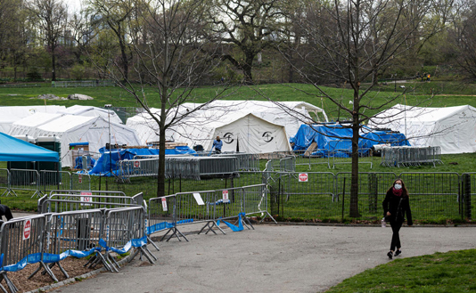 Some dozen tents, with ventilators, went up on a lawn opposite Mount Sinai Hospital at the end of March as the Big Apple boosted hospital capacity for the outbreak’s peak.