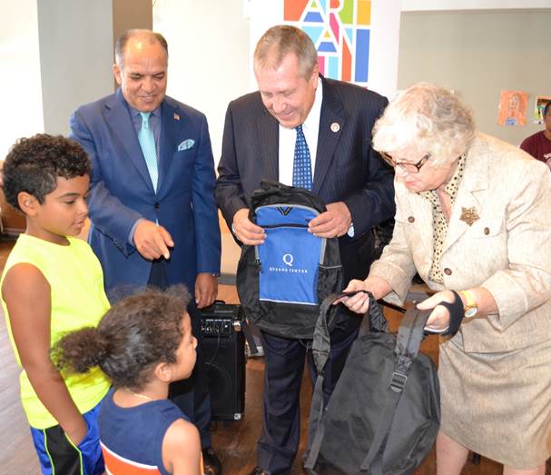 UsaNewsOnline.Com Desk, Elmhurst, NY, 26 AugustOn Wednesday, State Senator Toby Ann Stavisky (D-Whitestone, Elmhurst) and Samaritan Village President and CEO Tino Hernandez joined NYC Council Education Committee Chairperson Daniel Dromm (D-Elmhurst, Jackson Heights) for a back-to-school backpack giveaway sponsored by Queens Center Mall at the Pan Am Boulevard Family Transitional Residence.