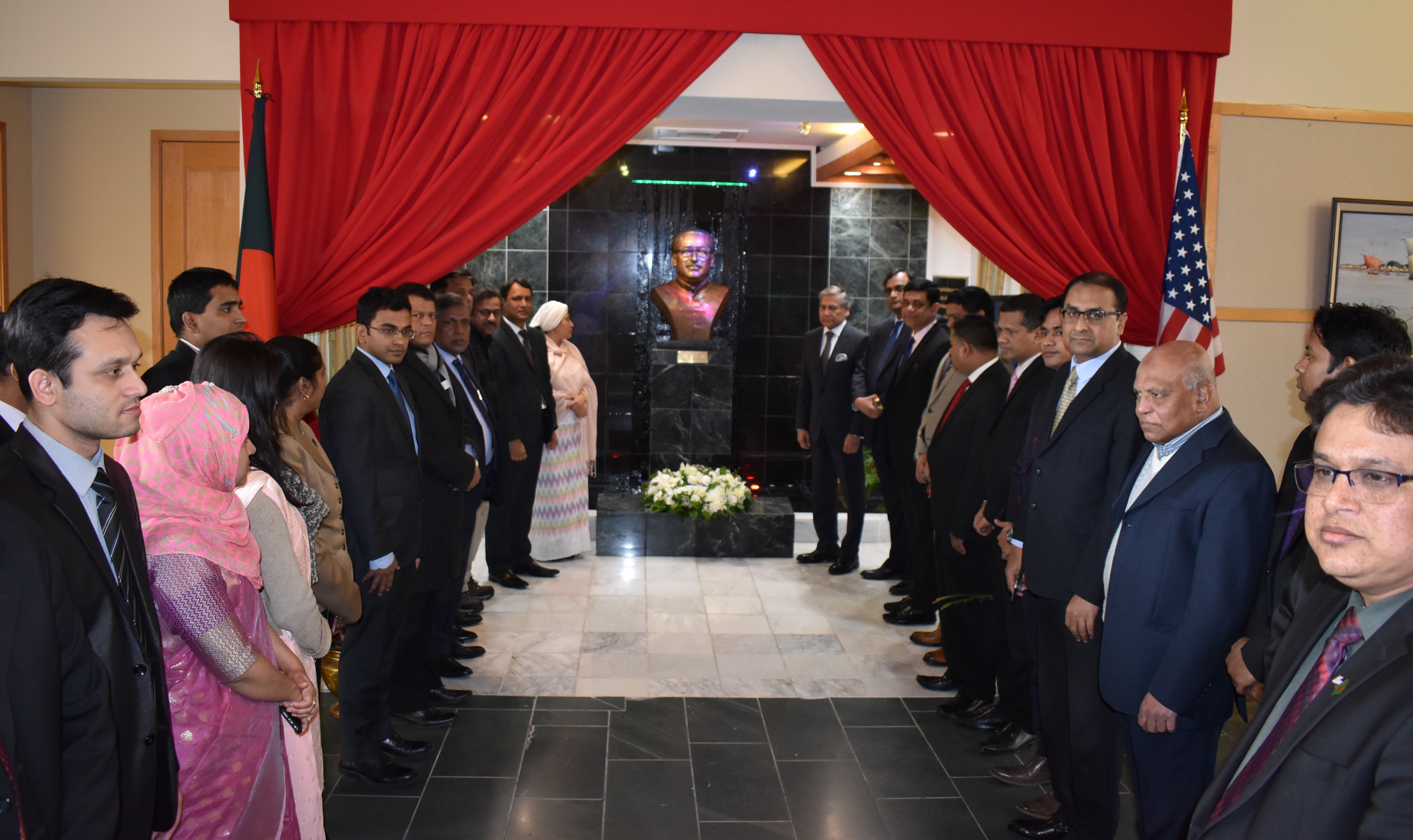 Earlier, Ambassador Ziauddin accompanied by officials and employees of the embassy placed wreath at the bust of Bangabandhu in the chancery.