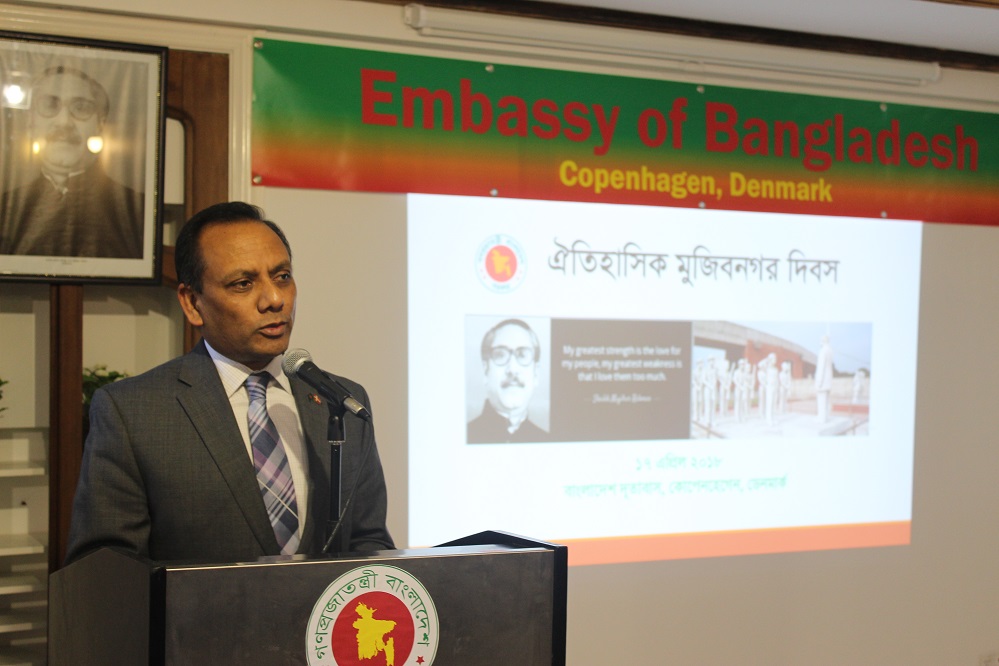 Embassy of Bangladesh in Copenhagen has observed the Historic ‘Mujibnagar Day’ today with due solemnity. The day began with the hoisting of the National Flag in the morning by the Ambassador of Bangladesh to Denmark Muhammad A. Muhith in presence of the officials and staff members of the Embassy. Later, a discussion meeting was organized in the evening at Chancery auditorium which was participated by the members of cross-section of Bangladesh community living in Denmark.