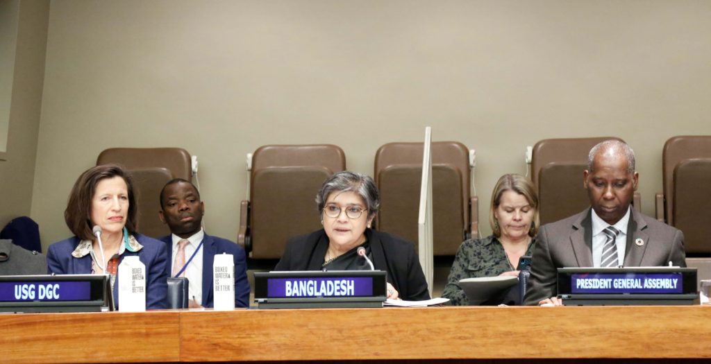 The venue was full to its capacity with the presence of senior diplomats of a large number of member states, UN officials, media personalities and civil society representatives. The President of the General Assembly attended the event as a special guest. The Permanent Representative (PR) of Bangladesh to the UN Ambassador Rabab Fatima made the welcome remarks. The President of the UN General Assembly Mr. Tijjani Muhammad-Bande, PR of Trinidad and Tobago Ms Pennelope Althea Beckless, Chargé d’affaires of Australia Ms Tegan Brink, Chargé d’affaires of Cameroon Zacharie Serge Raoul Nyanid, Chargé d’affaires of Mexico Juan Sandoval Mendiolea, UN Under-Secretary-General for Global Communications Ms. Melissa Fleming (on behalf of the UN Secretary-General), Director of the Documentation Division of UN Department of General Assembly and Conference Management Ms. Cecilia Elizalde also spoke. In addition, Director and UNESCO Representative to the UN in New York Ms. Marie Paule Roudil read out the message of DG of UNESCO. The New York City Mayor Bill de Blasio gave a special message on the occasion which was also read out.