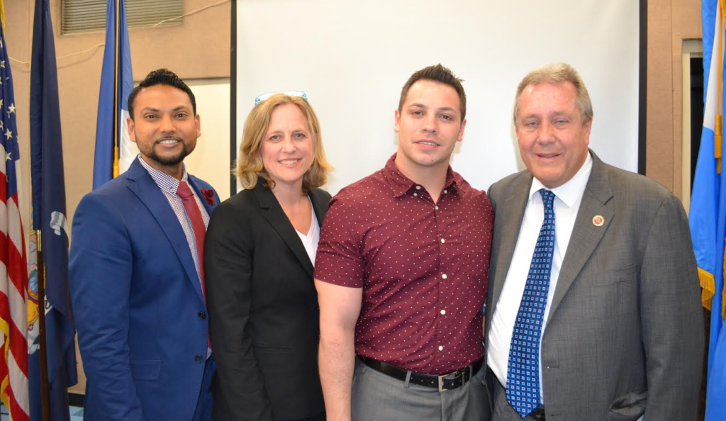 Kew Gardens, NY, June 29, 2016 — Queens Borough President Melinda Katz (D-Queens) and NYC Council Member Daniel Dromm (D-Jackson Heights, Elmhurst) honored Caribbean Equality Project Executive Director Mohamed Q. Amin and NYC Public School Teacher Justin Monaco at the 2016 LGBT Pride Celebration at Queens Borough Hall.  At the event, Queens Borough President Katz, Council Member Dromm and other elected officials highlighted the many contributions Amin and Monaco–both of whom are openly gay–have made to the LGBT rights movement in the Borough of Queens.