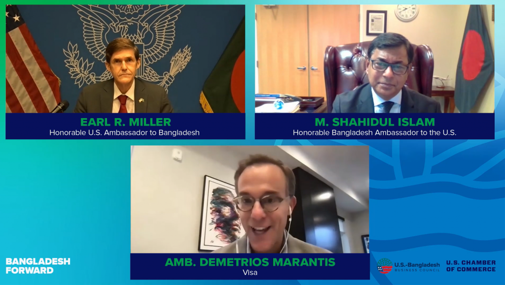 Prime Minister Sheikh Hasina delivered her keynote remarks and announced the Council’s inauguration in the virtually held event. “The United States has remained a strong partner in our journey towards democracy and development. It is important that both countries provide adequate policy support to further expand bilateral trade. We are constantly improving our physical, legal, and financial infrastructure to facilitate foreign investment,” said Prime Minister Sheikh Hasina. “Bangladesh’s sustained economic growth, rapidly expanding domestic market, and growing connectivity with a vast regional market of four billion people makes Bangladesh a promising destination for U.S. business and investment. I hope the U.S.-Bangladesh Business Council will help expand the economic partnership between our two countries.”  “The United States is one of Bangladesh’s most important trading partners, and over the past decade, we’ve seen an impressive growth trajectory that we are confident will create new opportunities for the U.S. companies. Our launch of the U.S.-Bangladesh Business Council reflects the U.S. Chamber of Commerce’s commitment to advance efforts to deepen trade and investment ties between the two countries. We believe the Council will serve as the premier bridge between business and government leaders in both countries,”