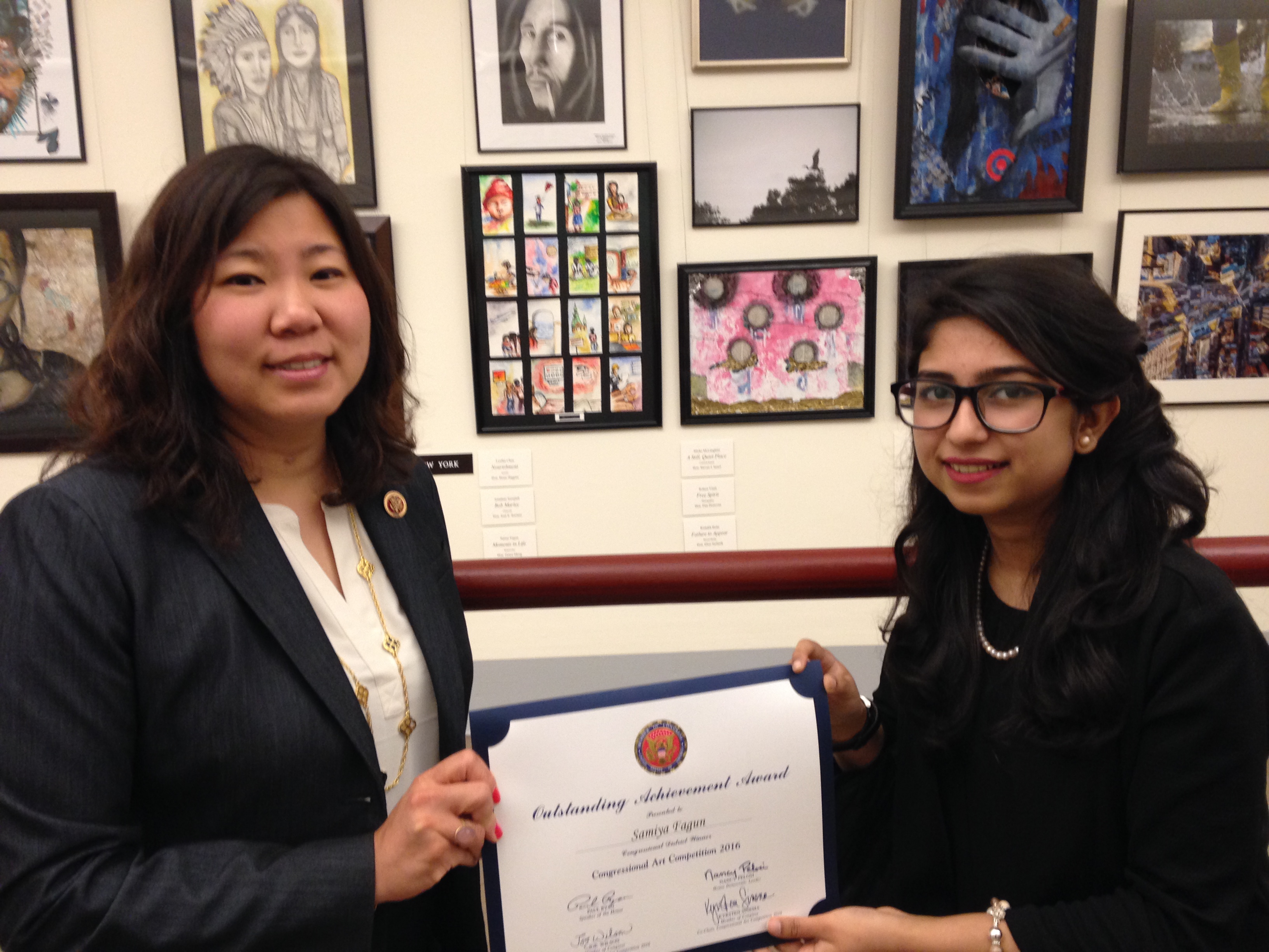 “It was an honor to welcome Samiya to Washington and I once again congratulate her for winning this competitive contest,” said Meng. “She is a very talented young lady and her artwork represents our district well in the nation’s capital. She has a bright future and I wish her nothing but the best.”