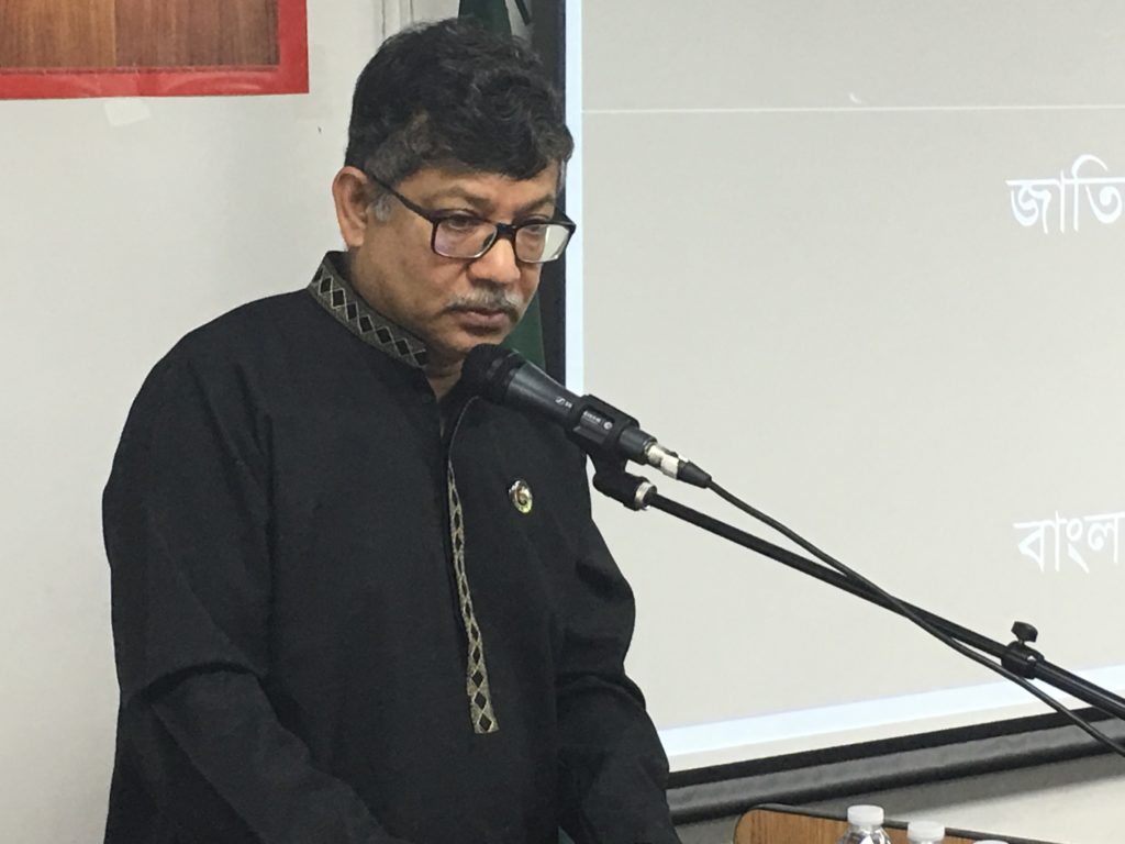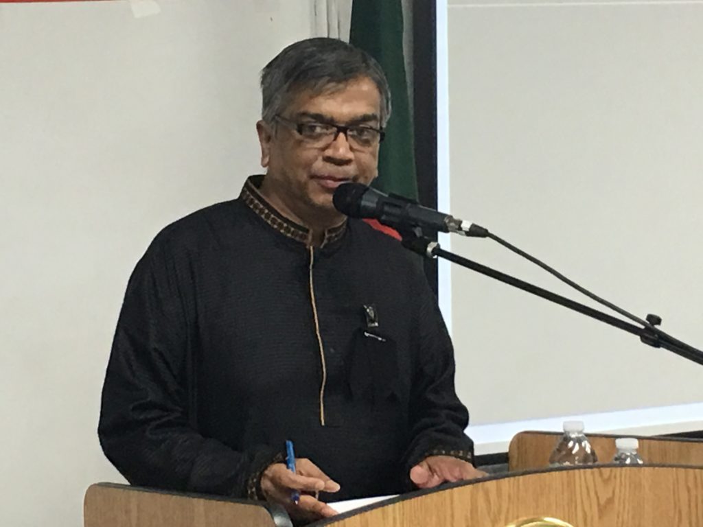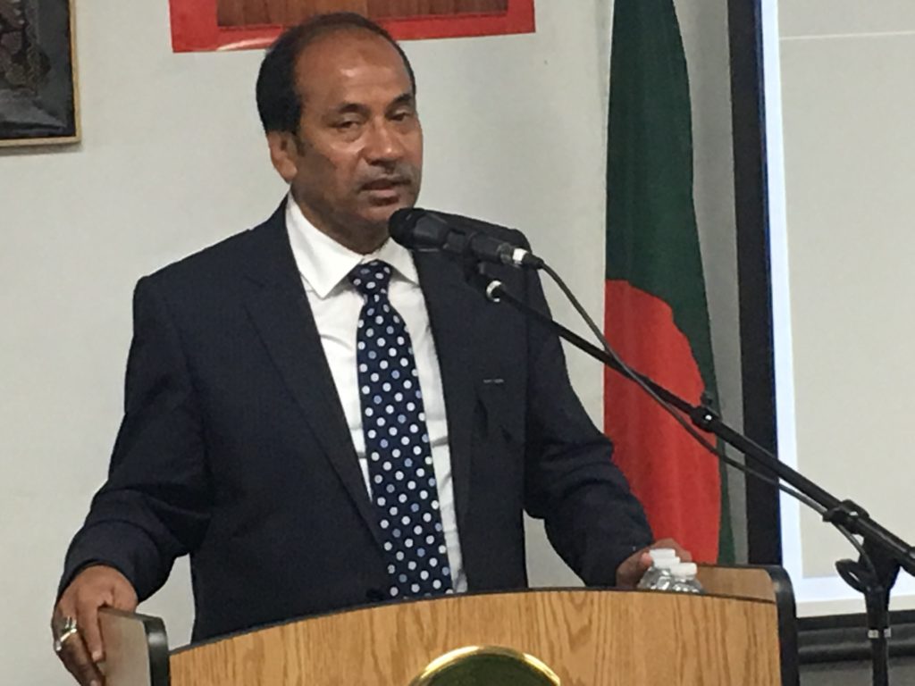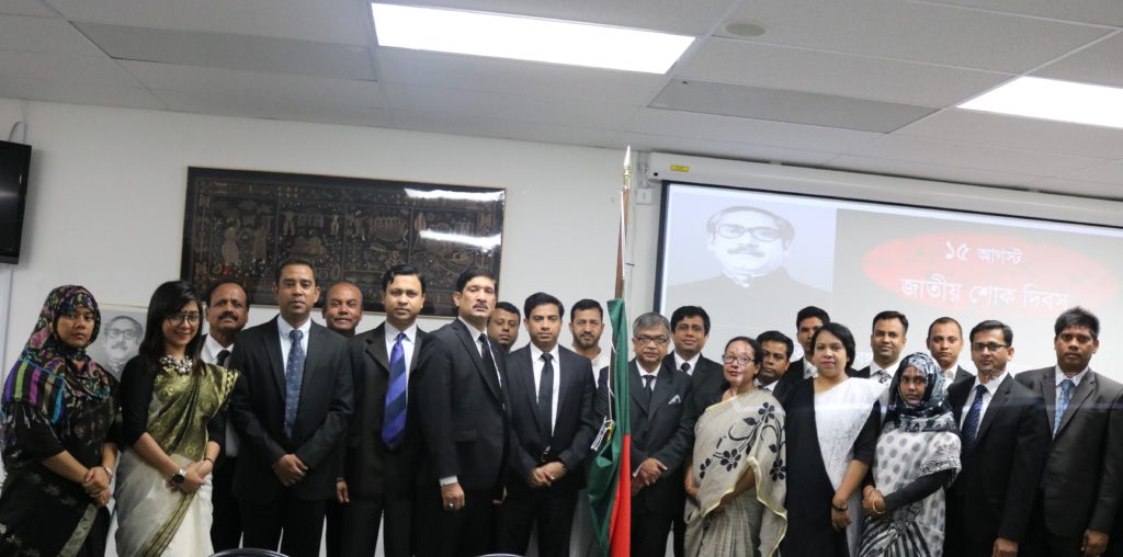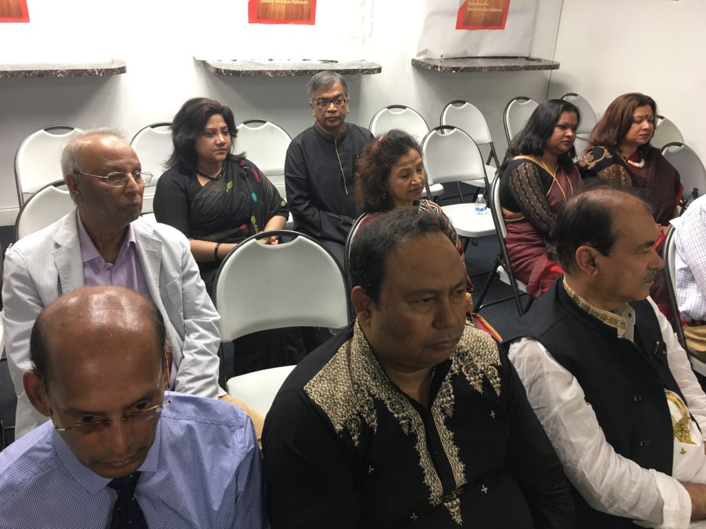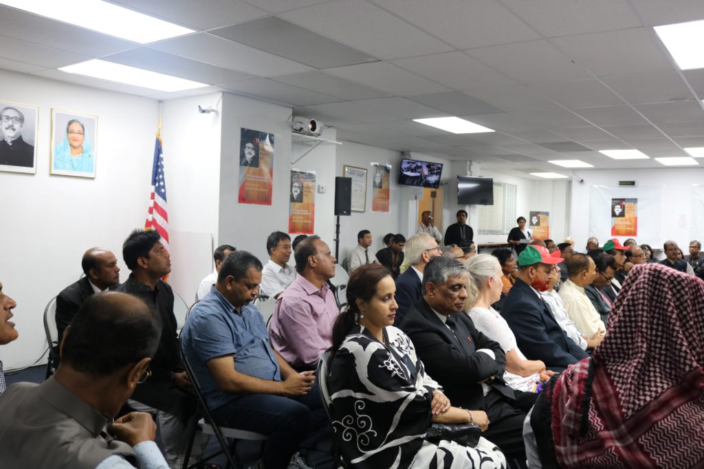 UsaNewsOnline.Com, New York : Bangladesh Consulate General in New York observed the National Mourning Day with due solemnity on 15 August, 2017, marking 42nd martyrdom of the Father of the Nation Bangabandhu Sheikh Mujibur Rahman. The day started in the morning with the hoisting of the national flag at half-mast at the Chancery by Mr. Md. Shameem Ahsan,ndc, Consul General of Bangladesh. In the evening, a discussion-cum-special prayer was held at the Auditorium. The programme began with observance of one minute silence as a mark of respect for the Father of theNation and other martyrs. A documentary on the glorious life of the Father of the Nation Bangabandhu Sheikh Mujibur Rahman was screened. This followed reading out of the messages of the HonorablePresident, Honorable Prime Minister, Honorable Foreign Minister and Honorable State Minister for Foreign Affairs on this occasion. In the discussion meeting, the speakers touched on the glorious life and achievements of the Father of the Nation. They urged all to work together to build a prosperous Bangladesh under the dynamic leadership of the Honorable Prime Minister Sheikh Hasina. Mr. Md. Zahid Ahsan Russel,MP, Honorable Chairman, Standing Committee on the Ministry of Youth and Sports and Advocate Md. Abu Zahir, MP, Habiganj-3, Honorable Member, Standing Committee on the Ministry of Housing and Public Works and H.E. Mr. Masud Bin Momen, Ambassador and PermanentRepresentative of Bangladesh to UN, among others, were present and spoke at the event. In his remarks, Consul General Mr. Md. Shameem Ahsan,ndc paid glowing tribute to Bangabandhu and narrated his active involvement throughout his life for just causes of Bangalis. In this regard, he urged the expatriate Bangladeshi nationals to work unitedly for the implementation of a Digital Bangladesh as envisioned by the Honorable Prime Minister Sheikh Hasina. Ekushey Padak Recipient drama personality Mr. Jamaluddin Hussain, popular Ganasangeet singer Fakir Alamgir, freedom fighters, members of Bangladesh community, leaders and representatives from political, cultural & social organizations, members of media, officials from Consulate General and Permanent Mission of Bangladesh to UN, among others, were present. A special prayer was offered for the salvation of the departed souls of Bangabandhu Sheikh Mujibur Rahman, other martyrs of the family and for the prosperity of the country. The programme ended with distribution of Tabarak among the guests.