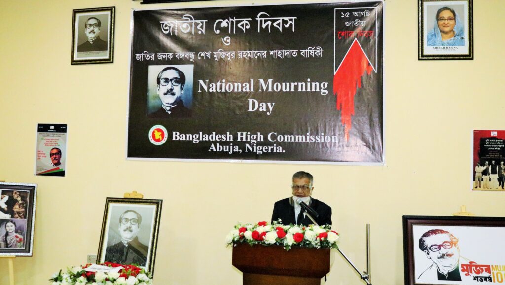 UsaNewsOnline.Com Desk : Bangladesh High Commission in Abuja, Nigeria observed the National Mourning Day with due respect & solemnity on 15 August 2020, marking 45th martyrdom of the Father of the Nation Bangabandhu Sheikh Mujibur Rahman.