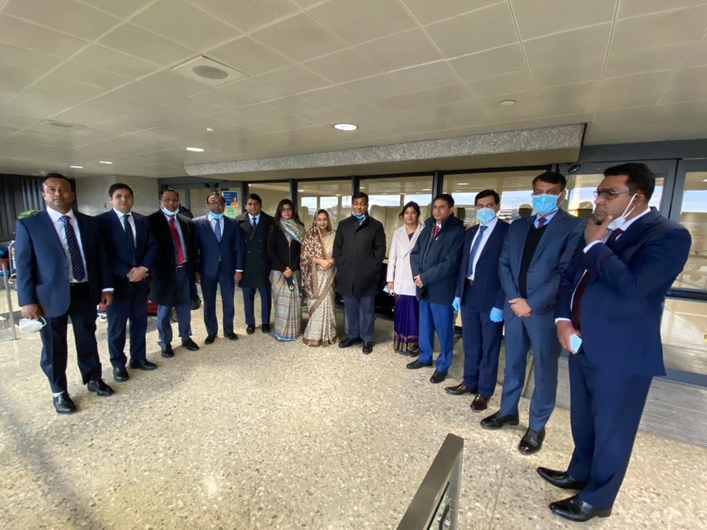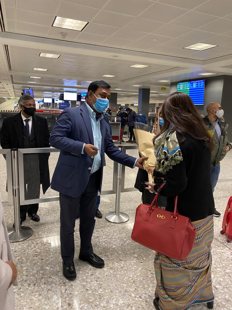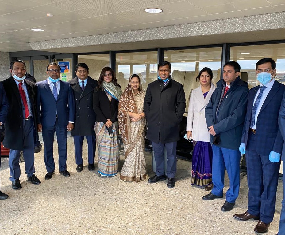 Officers of Bangladesh Embassy in Washington, D.C. and Consulate General, New York greeted him at Dulles International Airport in the morning.