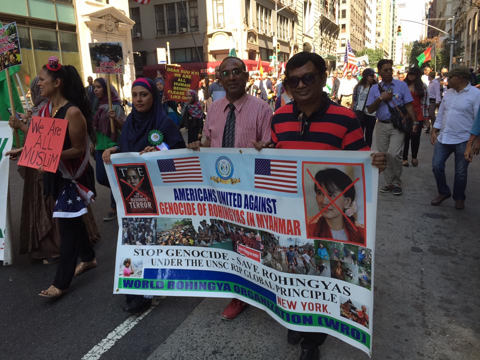 Political and Islamic groups, along with other civil society organizations, joined protests in New York City during Annual Muslim Parade Day on Sundayto urge Myanmar to “stop committing genocide” and take back those who have sought refuge elsewhere. Over a thousand Muslim/cristian ,Jewish and non Muslims devotees belonging to the organization joined a rally in the capital’s New York city Manhattan Mid town area after Zohar noon prayer. Many protester cries as he listens to a preacher describing the plight of the Rohingyan during a rally in Manhattan, This Muslim parade peace , justice and solidarity here in New York City and Muslims , non Muslims all they gathered all across the country in Manhattan at ,medicine avenue , The program started as per schedule right after Zohar pray the program ended at 5:00 pm ,manhattan Borough president was the Cheif guest at this program . many city officials and representative of social organization delivered their speech and supported rouging an issue ,Representative from many International news agency including local electronic media, Television channels MTV, Time TV, NTV, TV Asia, Chanal 7, Chanal 1, BBC, Al Jazziera ,news papers editors and journalists covered entire scenario & captured picture ,news and other activities during the remarkable and successful program the heart of the New York City Muslims chanted slogan and voiced concerning rohingun Muslims issue protested Myanmar governments .Muslims, non Muslims criticized recent crucial action towards rigingyan. Muslims , The President & founder of SACO America Mohammad mahab delivered his Speech to the crowed audience and stated in mayanmar Human right is violated , Muslims are being targeted mohammad mahab urged international Muslim community to help Rohingyan muslim for their right and solidarity , emphasized for work and efforts and will continue fight for the rohingyan issue and requested for move on.