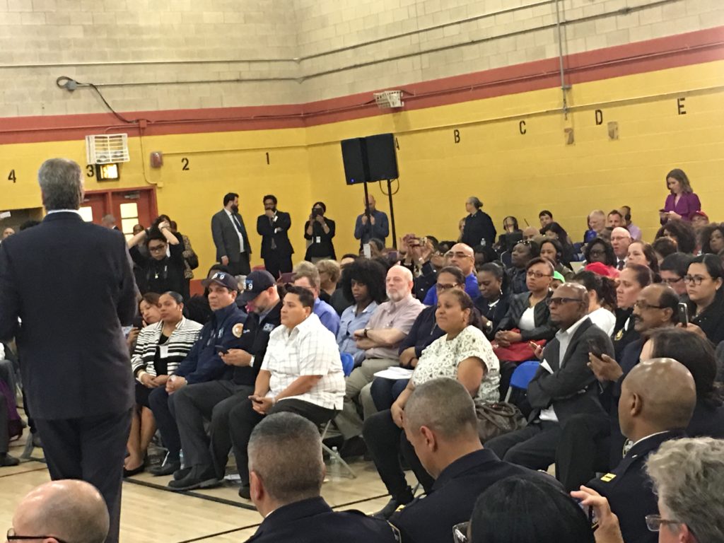 UsaNewsOnline.Com, Bronx, New York : NYC Mayor Bill de Blasio held a town hall meeting in the Bronx Wednesday. Held at the Adlai E. Stevenson High School with a few hundred people in attendance, Mayor