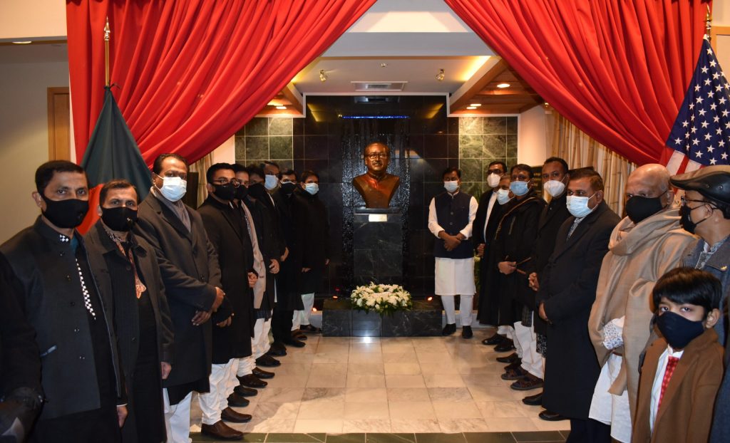 Later, the Ambassador placed wreaths at the bust of the Father of the Nation Bangabandhu Sheikh Mujibur Rahman and observed silence for a while as a mark of respect for the great leader. The officers and employees were present.