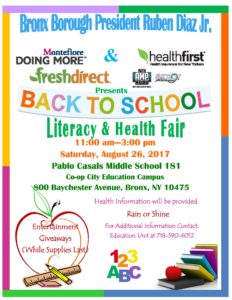 BRONX BOROUGH PRESIDENT DIAZ TO HOST ‘BACK TO SCHOOL’ EVENT