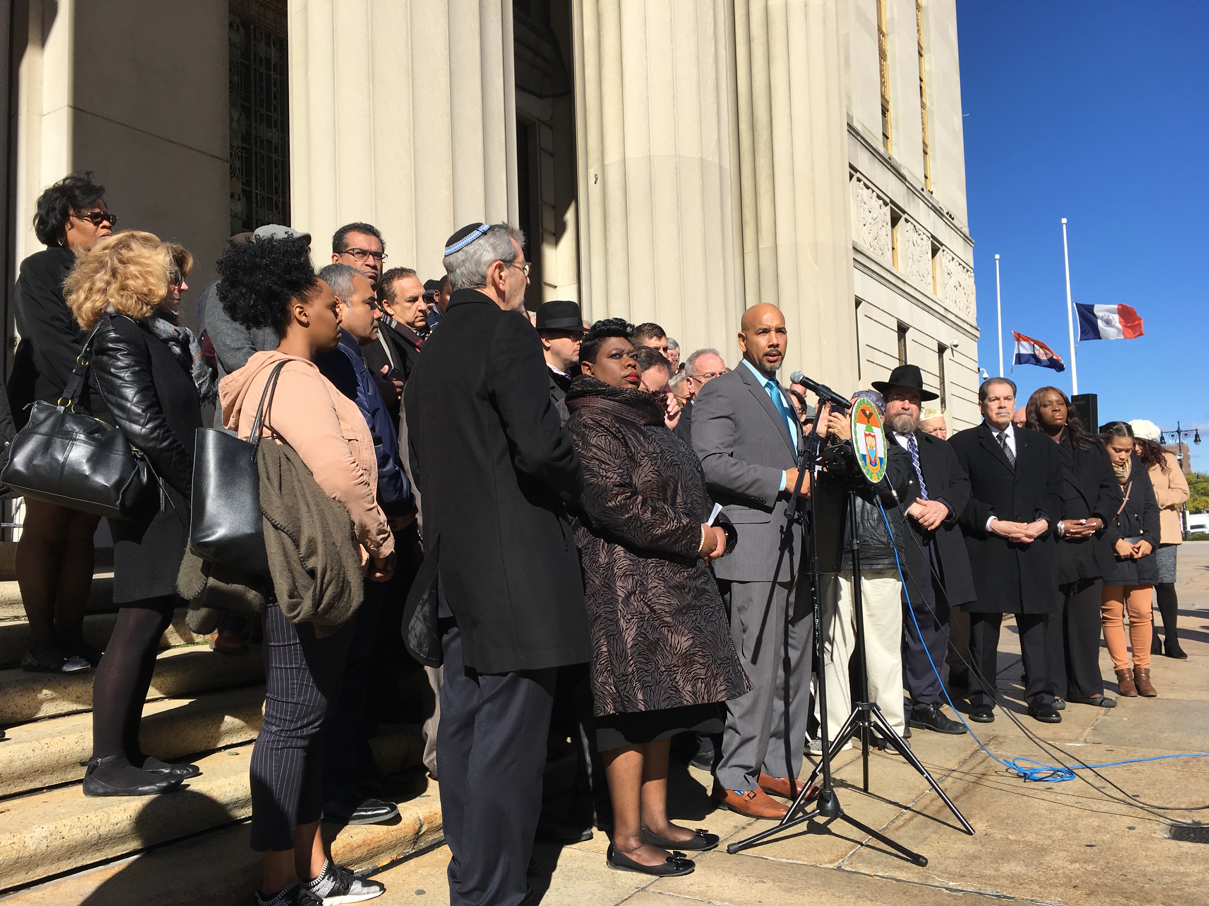 More than 100 clergy members, elected officials, community leaders, judges and members of the public joined together on the steps of The Bronx County Building for the vigil.