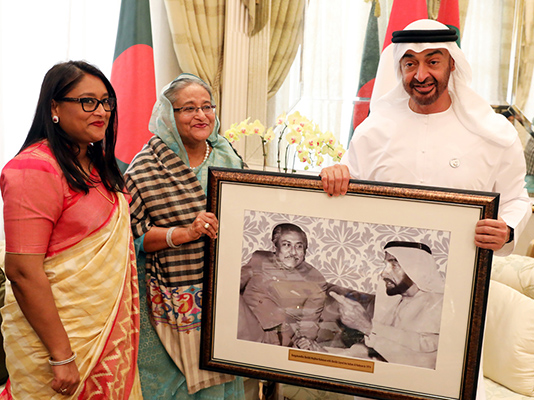 The foreign secretary said the prime minister presented a photograph of Father of the Nation Bangabandhu Sheikh Mujibur Rahman and UAE’s founding father Sheikh Zayed bin Sultan Al Nahyan to the Crown Prince.