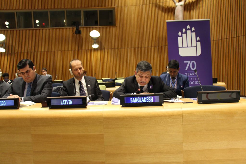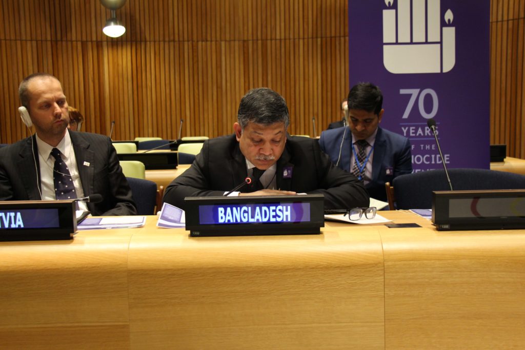 UsaNewsOnline.Com, New York : “Genocides in the recent past must be recovered from our collective amnesia, like the ones committed in Bangladesh in 1971. Having endured the worst form of Genocide ourselves, we know the pain” –said Ambassador Masud Bin Momen, Permanent Representative of Bangladesh to the UN, 8 December, at an event of the ‘69th Anniversary of the Genocide Convention’ and ‘International Day of Commemoration and Dignity of the Victims of the Crime of Genocide and of the Prevention of this Crime’, organized by United Nations at its Headquarters in New York. Quoting a part of the Prime Minister’s special message given in commemoration of this day – “The 1971 genocide included targeted elimination of individuals on the ground of religion, race and political belief. The intellectuals were killed brutally. To pay homage to the victims of the 1971 genocide, our national parliament has recently declared 25th March as “Genocide Day”, the Ambassador said, “This is an indication how closely we hold the issue of Genocide to our heart”.The PR reiterated Bangladesh’s support for universalization of ‘the Genocide Convention’ and ‘the Rome Statute on the International Criminal Court’. He emphasised on the importance of early warning in prevention of genocide. Referring to the recent remarks of the UN High Commissioner for Human Rights whether the systematic human rights violation and atrocity crimes committed in Myanmar’s Rakhaine State could be ruled out as having ‘elements genocide’, should not be qualified as such, Ambassador Masud emphasised on the need for coming to terms with these questions.Miguel de Sepra Soares, Under Secretary General for Legal Affairs and UN Legal Counsel represented the Secretary General at the event and delivered the welcome remarks. United Nations Special Advisor on the Prevention of Genocide Mr. Adama Dieng was the keynote speaker of this event while Ms. Silvia Fernandez de Gurmendi, President of the International Criminal Court; Zohrab Mnatsakanyan, PR of Armenia and Jean-Claude Felix do Rego PR of Benin highlighted in their speeches the state obligations under this Genocide Convention, its development and current challenges.
