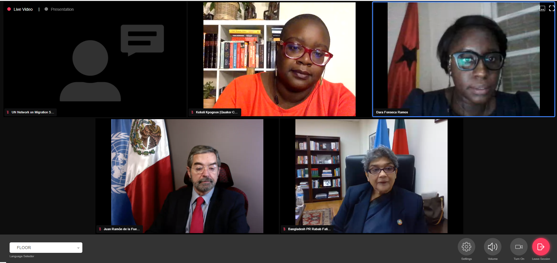 Endorsing the 360-degree approach to benefit from the expertise and experience of the national, regional and global stakeholders she emphasized the need for enhanced global cooperation for better management of migration governance. In this connection, Ambassador Fatima called for harnessing the development potentials of migration and urged the UN and other international bodies to support the national governments in their effort to align the migration related activities with the 2030 Agenda. She called for enhanced global partnership for the skilling, re-skilling and up-skilling of migrant workers. She also stressed the importance of providing them with sufficient funds for coping up with the ‘new normal’ of the post-COVID job market. Secretary General of UN and Director General of IOM delivered the opening remarks at the event. This was followed by a high level panel discussion. Among others, Foreign Ministers of Portugal, Guinea-Bissau and El Salvador, Permanent Representatives of Canada, Mexico, Morocco, Ghana, Nepal and other distinguished delegates attended the event.