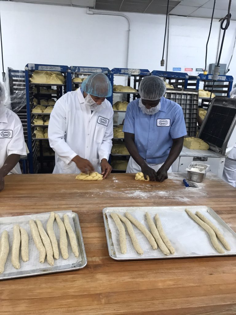 (CAPTION: Bronx Borough President Ruben Diaz Jr. braids a challah bread during a visit to the Zaro’s Family Bakery commercial kitchen in Port Morris on August 14, 2017. Zaro’s has announced that it will return to Parkchester in Fall 2017, and will expand its Port Morris facility to include a retail component in Spring 2018.) Press Release.